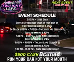 No drifting, stopping, or reckless driving (Twilight laps sessions )